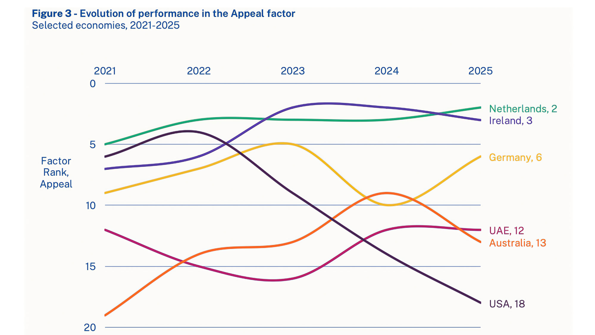 The country performs strongly in Appeal as well, holding 12th place globally. Factors include: