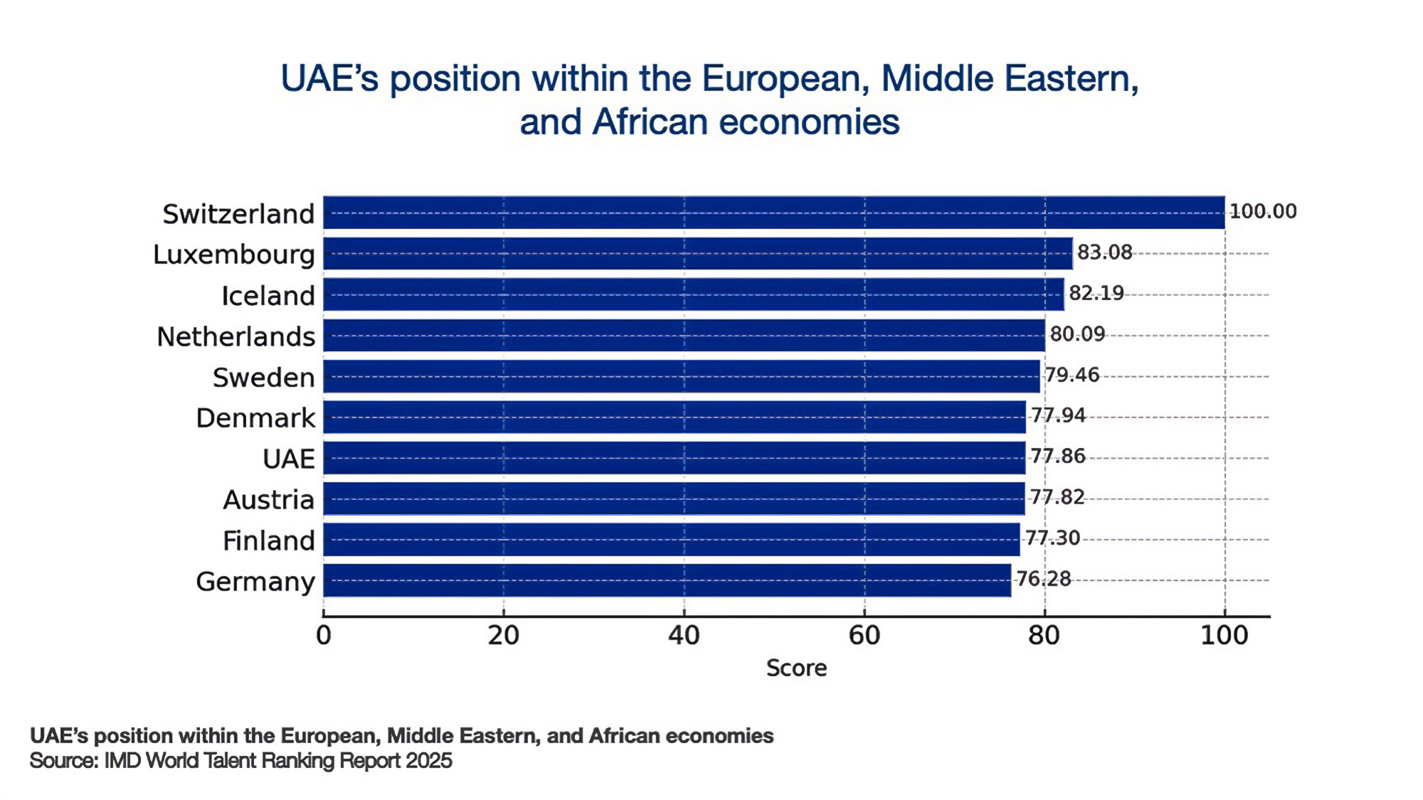 At the same time, the report demonstrates how the UAE continues to lead the Arab world in talent competitiveness. It also now stands shoulder-to-shoulder with some of Europe’s strongest performers (including Austria, Denmark, and the Netherlands) in the broader EMEA region. This progress underscored its unique role as a regional leader and a global business hub.
