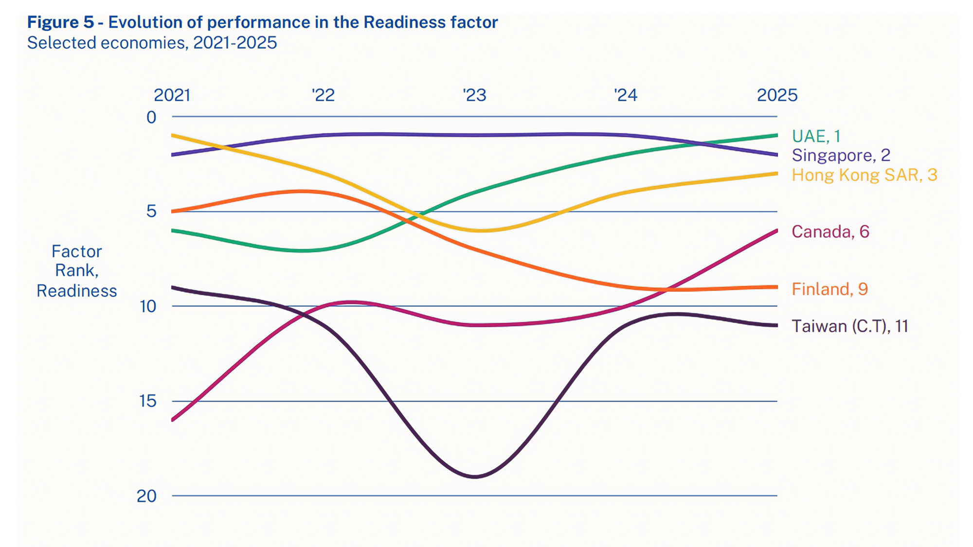 Readiness is the UAE’s strongest performance area, ranking No. 1 globally and proving that its workforce is highly aligned with market demands. Key highlights include: