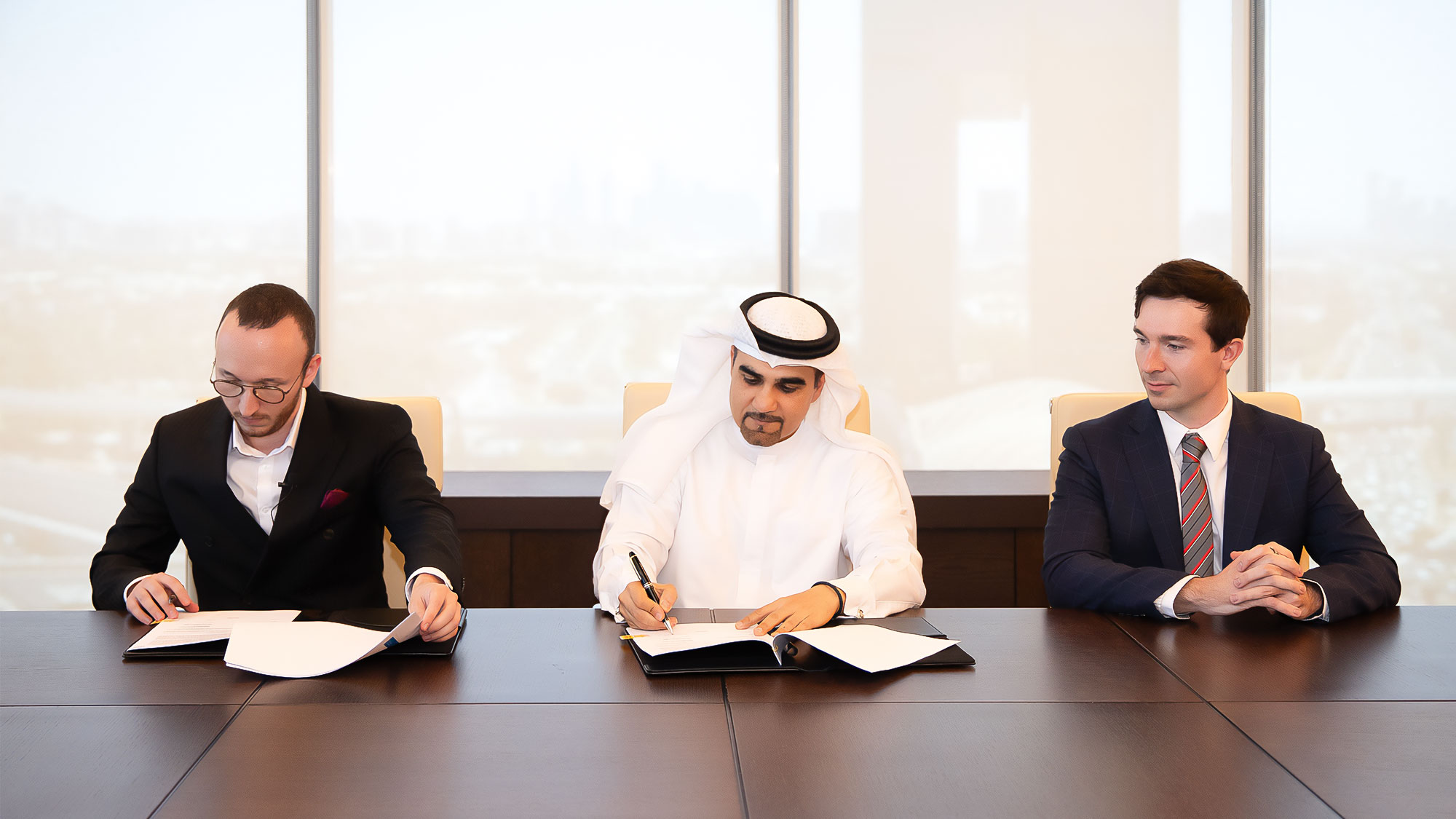 From left to right: Ruben Miessen, CEO & Co-Founder at LEGALFLY; Hisham Al Gurg, CEO of Seed Group and The Private Office of Sheikh Saeed bin Ahmed Al Maktoum; Jasper Bartlett, Head of Partnerships at LEGALFLY